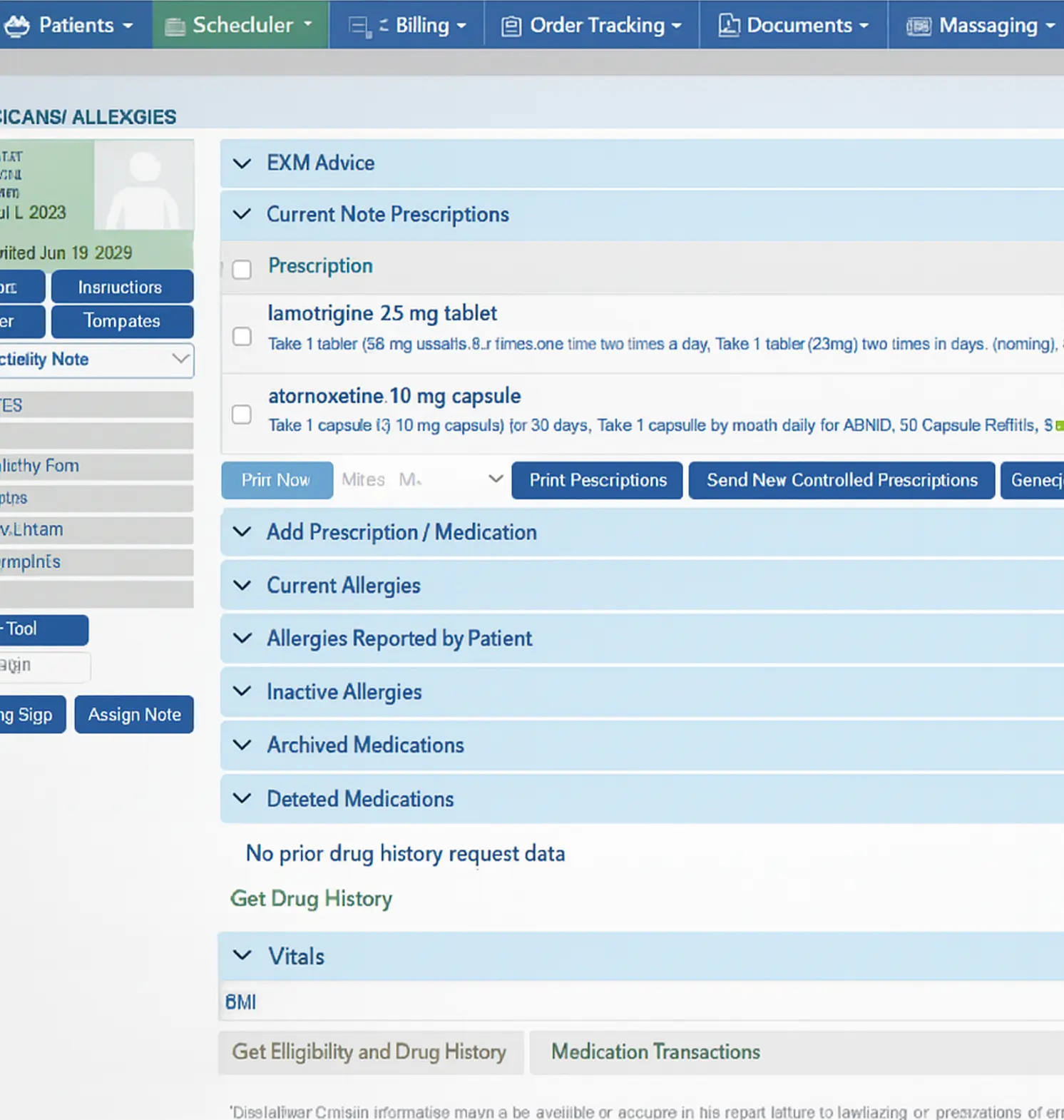 Built-in E/M Coding Recommendations support accurate billing, and automatic safety checks give providers confidence in every prescribing decision. The platform supports supervisory prescribing relationships, delegated prescription queues for controlled and non-controlled medications, and EPCS reporting—making it easier for teams to stay coordinated.